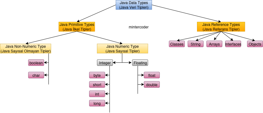 Java da 8 tane built-in primitive types vardır. Bunlar;