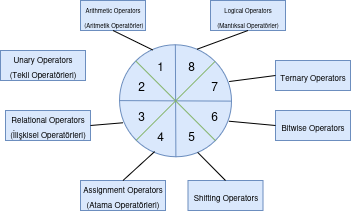 | Compound Assignment Operator (*=) | Bu operatör soldaki değişkenin değeriyle sağdaki değişkenin değerini çarpıp soldaki değişkene atamayı yapar. |